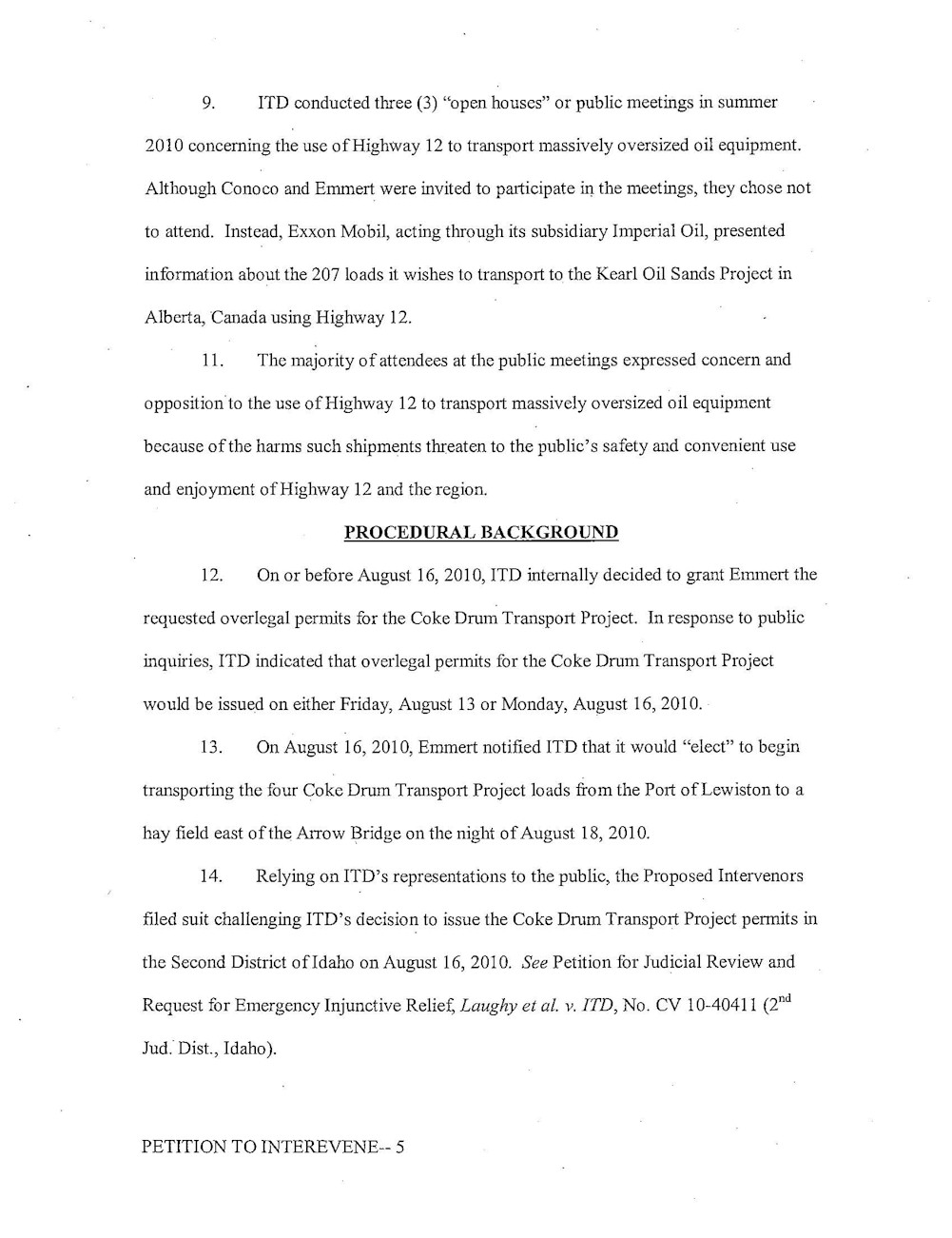 Petition to Intervene in the Contested Case Regarding the Coke Drum Transport Project (ConocoPhillips/Emmert International Shipments)