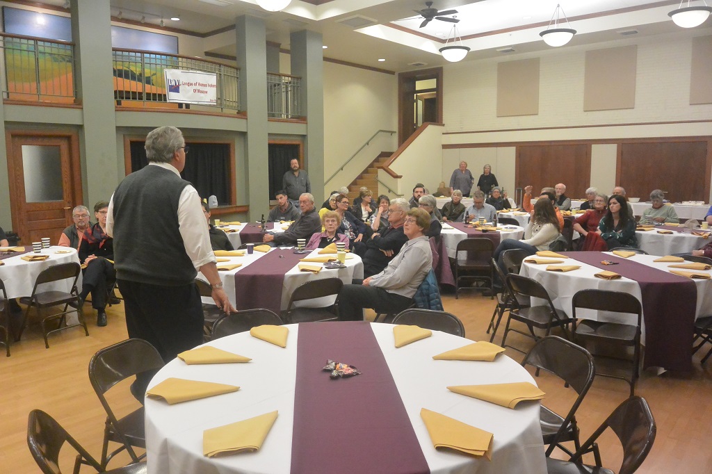 Sixty-five years of League of Women Voters, Moscow . . . *Cake and snacks were served. There was a no-host wine and beer bar, and a presentation from Steve Smith entitled "Politics or Libel" In a Polarized Society, Civil Discourse is Anything But." *___________________________* Steve Smith discussed “Politics or Libel: In a Polarized Society, Civil Discourse is Anything But” at the League of Women Voters of Moscow forum in the 1912 Center Great Room. |