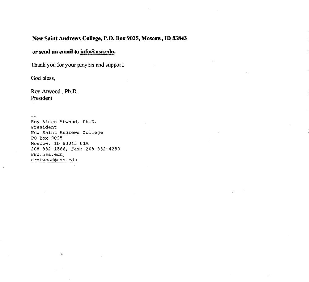 Letter Sent to Members of Christ Church From Roy Atwood Lobbying for a Political Decision
